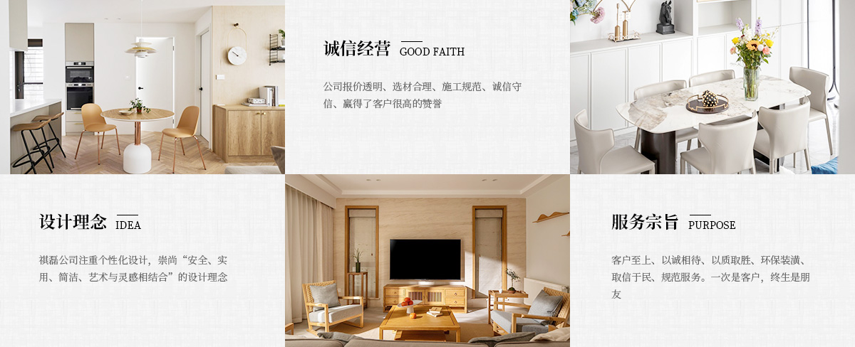 上海祺磊建筑裝飾工程有限公司是上海市裝飾行業(yè)中企業(yè)之一,自1999年創(chuàng)業(yè)以來(lái),以特別的運(yùn)營(yíng)模式,很高的施工質(zhì)量,誠(chéng)信的服務(wù)實(shí)舉,以及其先進(jìn)科學(xué)的管理體系逐步發(fā)展成為上海裝飾行業(yè)中的佼佼者。祺磊公司注重個(gè)性化設(shè)計(jì),崇尚“安全、實(shí)用、簡(jiǎn)潔、藝術(shù)與靈感相結(jié)合”的設(shè)計(jì)理念,公司擁有多名頗具知名度的設(shè)計(jì)師,培養(yǎng)了道德良好、技術(shù)很好的江、浙施工隊(duì)伍。公司報(bào)價(jià)透明、選材合理、施工規(guī)范、誠(chéng)信守信、贏(yíng)得了客戶(hù)很高的贊譽(yù)。