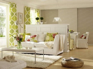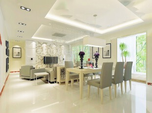 如果想起到空間的通透作用,可以用珠簾或者紗簾來隔斷客廳和餐廳。