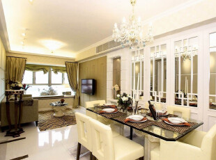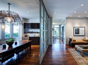 客廳和餐廳之間用玻璃門隔斷,可以提高空間的廣度和深度,因為玻璃面本身就有拓展空間的效果。